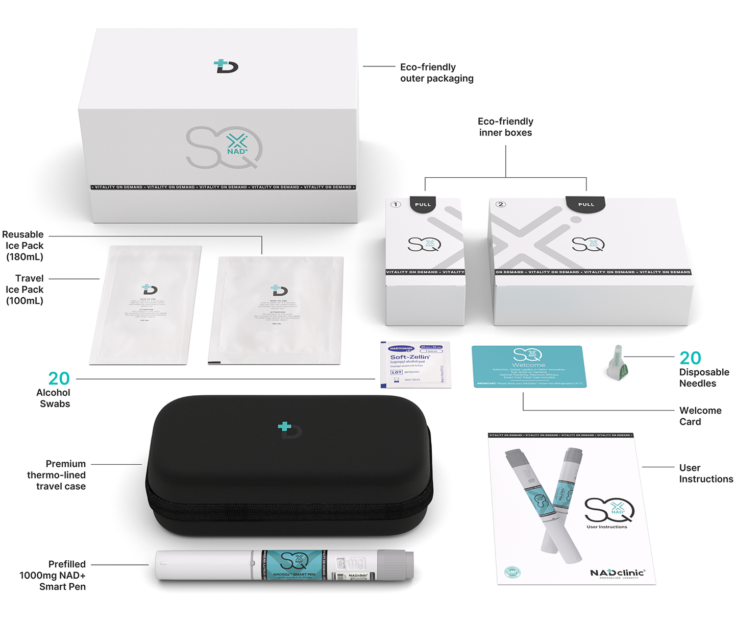 - 1 pre-filled NAD+ Smart Pen (1000mg)